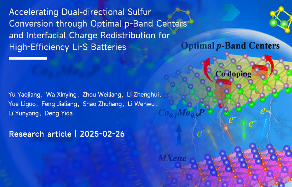 AbstractDespite extensive investigation into various electrocatalysts to enhance the progressive redox transformations of sulfur species in Li-S batteries (LSBs), their catalytic abilities are often hindered by suboptimal adsorption-desorption dynamics and slow charge transfer. Herein, a representative Co0.1Mo0.9P/MXene heterostructure electrocatalyst with optimal p-band centers and interfacial charge redistribution is engineered as a model to expedite bidirectional redox kinetics of sulfur via appropriate Co doping and built-in electric field (BIEF) effect. Theoretical and experimental results corroborate that the optimal Co-doping level and BIEF heterostructure adjusts the p-band center of active phosphorus sites in Co0.1Mo0.9P/MXene to optimize the adsorption properties and catalytic performance of sulfur species, the BIEF between Co0.1Mo0.9P and MXene significantly decreases the activation energy as well as Gibbs free energy of rate-determining step, accelerates interfacial electron/Li+ transfer rate during cycling, thereby accelerating dual-directional sulfur catalytic conversion rate in LSBs. Consequently, the S/Co0.1Mo0.9P/MXene cathode attains a large initial capacity of 1357 mAh g-1 at 0.2 C and a 500-cycle long stability (0.071% decay rate per cycle) at 0.5 C. Impressively, the high-loading S/Co0.1Mo0.9P/MXene cathode (sulfur loading: 5.2 mg cm-2) also presents a remarkable initial areal capacity (6.5 mAh cm-2) with superior cycling stability under lean electrolyte (4.8 μL mgsulfur-1) conditions, and its Li-S pouch cell delivers a high capacity of 1029.4 mAh g-1. This study enhances the comprehension of catalyst effect in Li-S chemistry and provides important guidelines for designing effective dual-directional Li-S catalysts.Graphical abstractRational regulation of p-band centers and interfacial charge redistribution in phosphide-based heterostructures is proposed via the combination of optimal Co-doping levels and built-in electric field, the as-designed S/Co0.1Mo0.9P/MXene cathode demonstrates moderate adsorption for polysulfides, rapid electron/Li+ transfer rate, and excellent bidirectional sulfur conversion kinetics. Consequently, it achieves a large initial capacity, a stable long-term lifespan with 500 cycles and a high areal capacity under high sulfur loading and low electrolyte conditions.