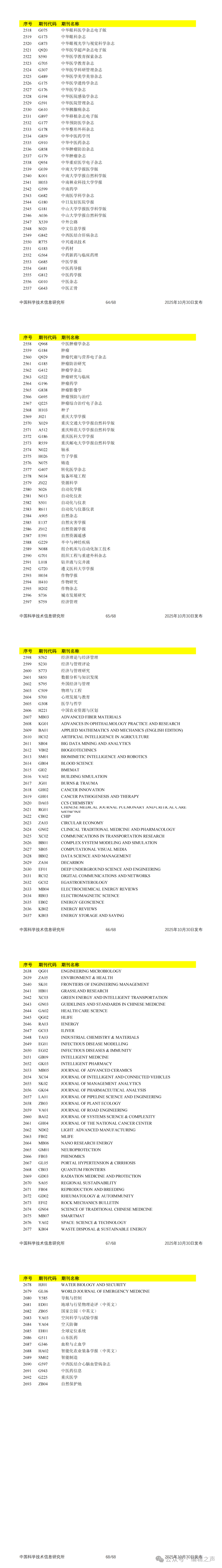 2025年中国科技论文统计与分析工作已经完成,本年度中国科技论文统计报告于2025年10月30日发布。中国科技核心期刊目录(2025年版)具体内容如下: