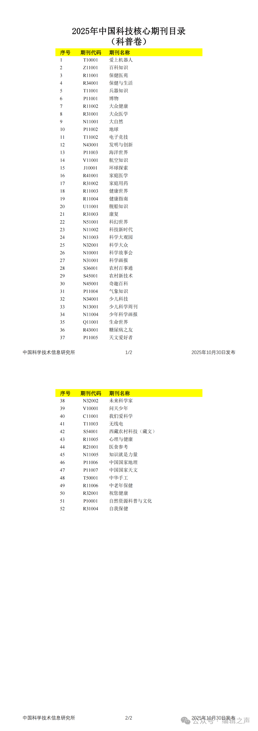 2745种!2025年中国科技核心期刊目录发布(附全名单)