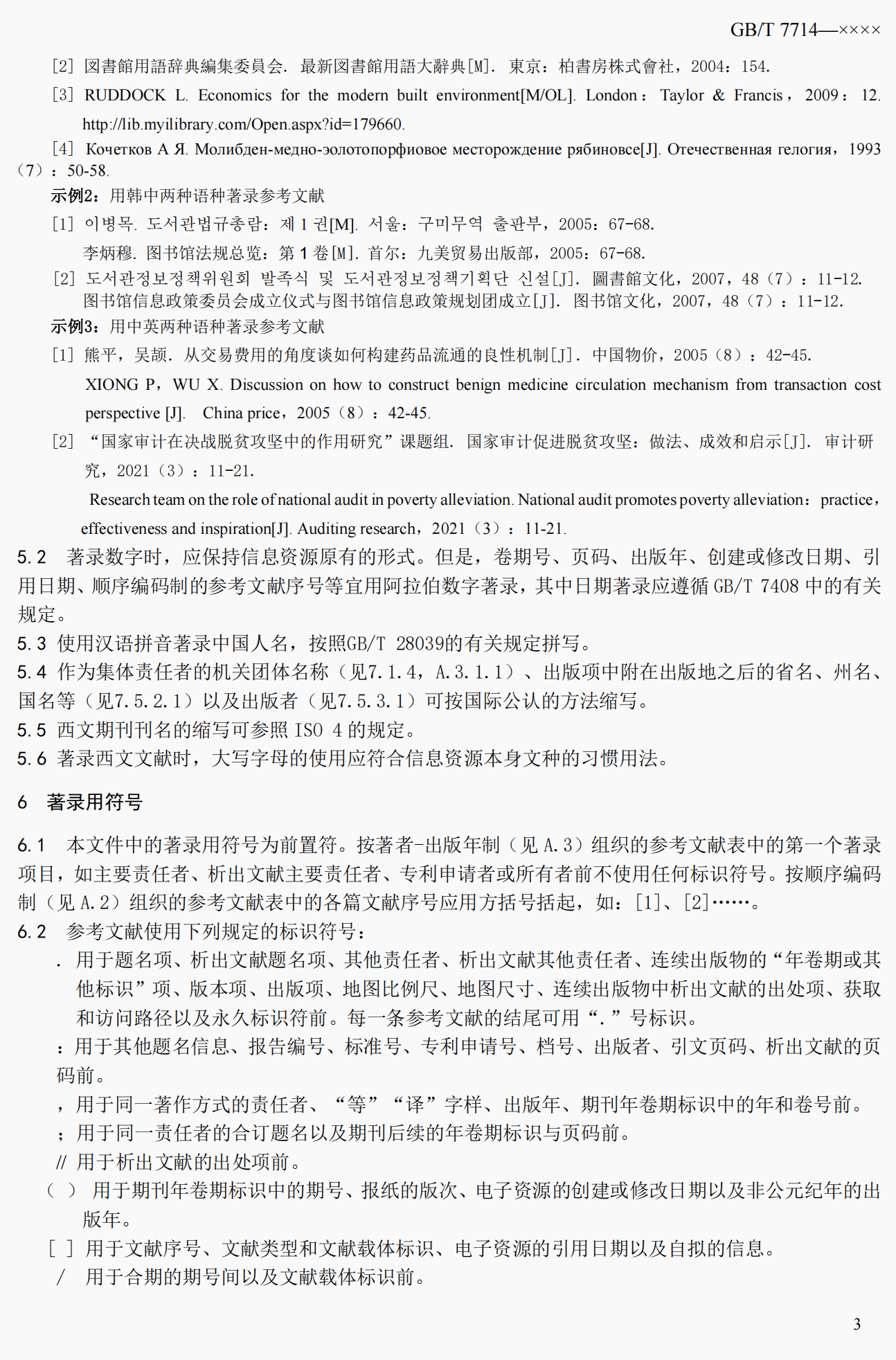 本文件规定了参考文献的著录用文字、著录用符号、著录通则、各文献类型的著录项目与著录格式以及参考文献标引体系编制法。