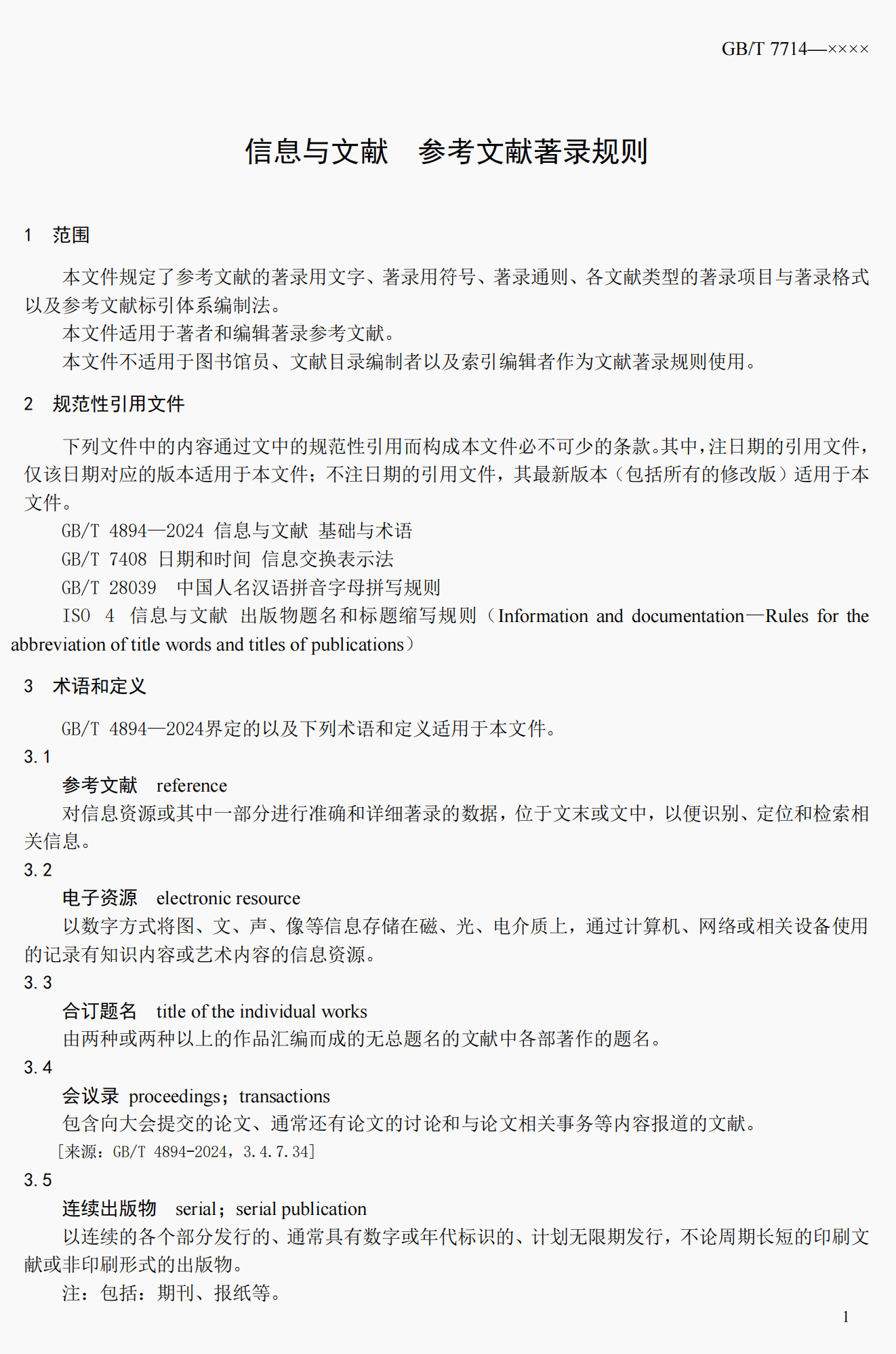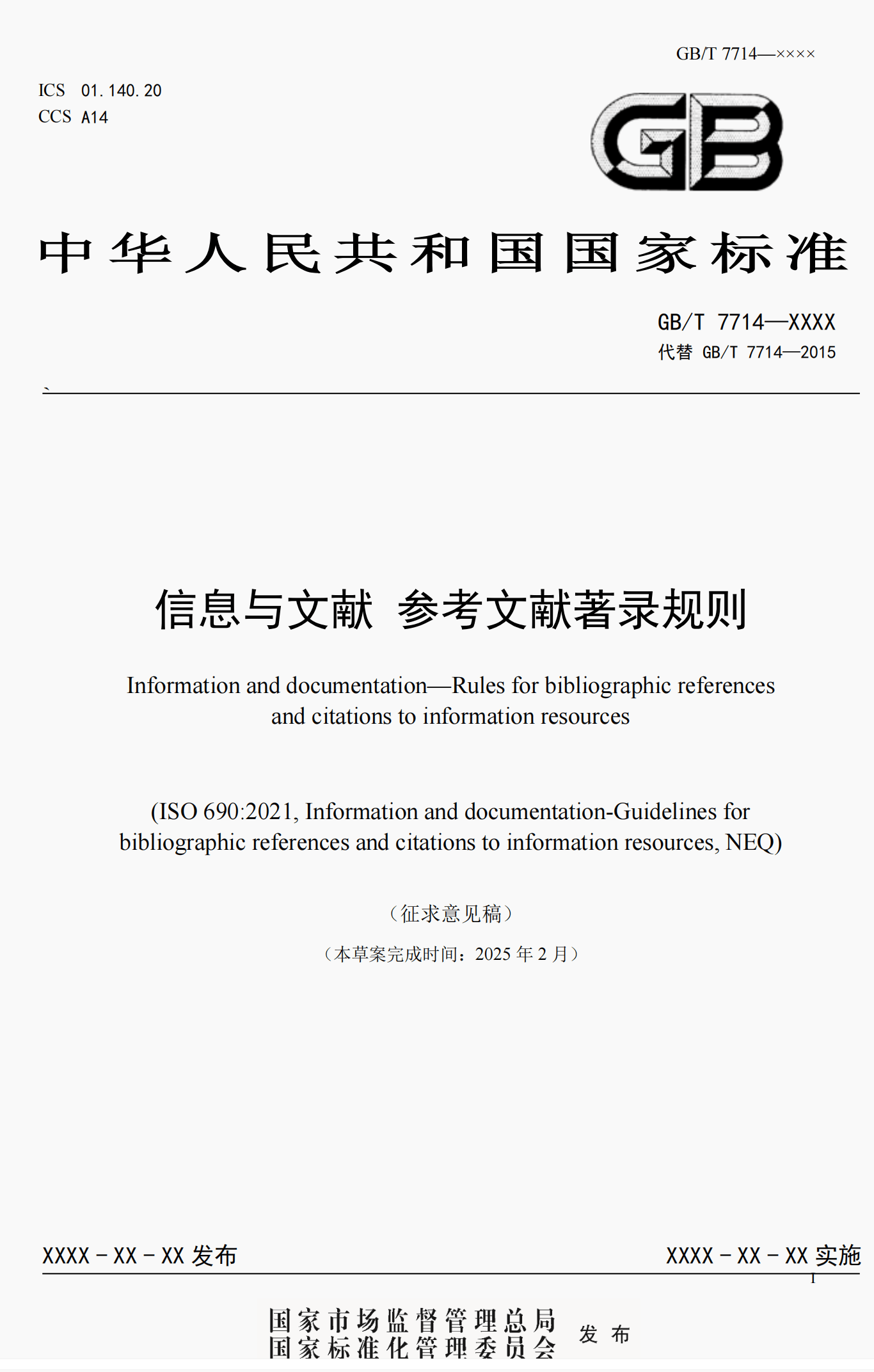 先睹为快 ‖ 信息与文献 参考文献著录规则(GB/T 7714—2025)(草案)